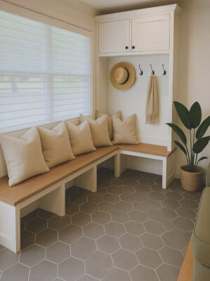 Hall Tree with Bench, Rustic wood nightstands, 2 step bar, walnut live edge bar top, walnut shelves and farmhouse